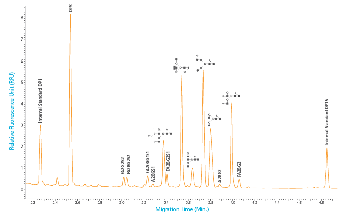 SCIEX Fast Glycan Labeling and Analysis technology is designed to be used with the PA 800 Plus Pharmaceutical Analysis System, a robust analytical platform that provides characterization of product purity, charge heterogeneity and glycan analysis, to help you with the development and quality control of therapeutic proteins.