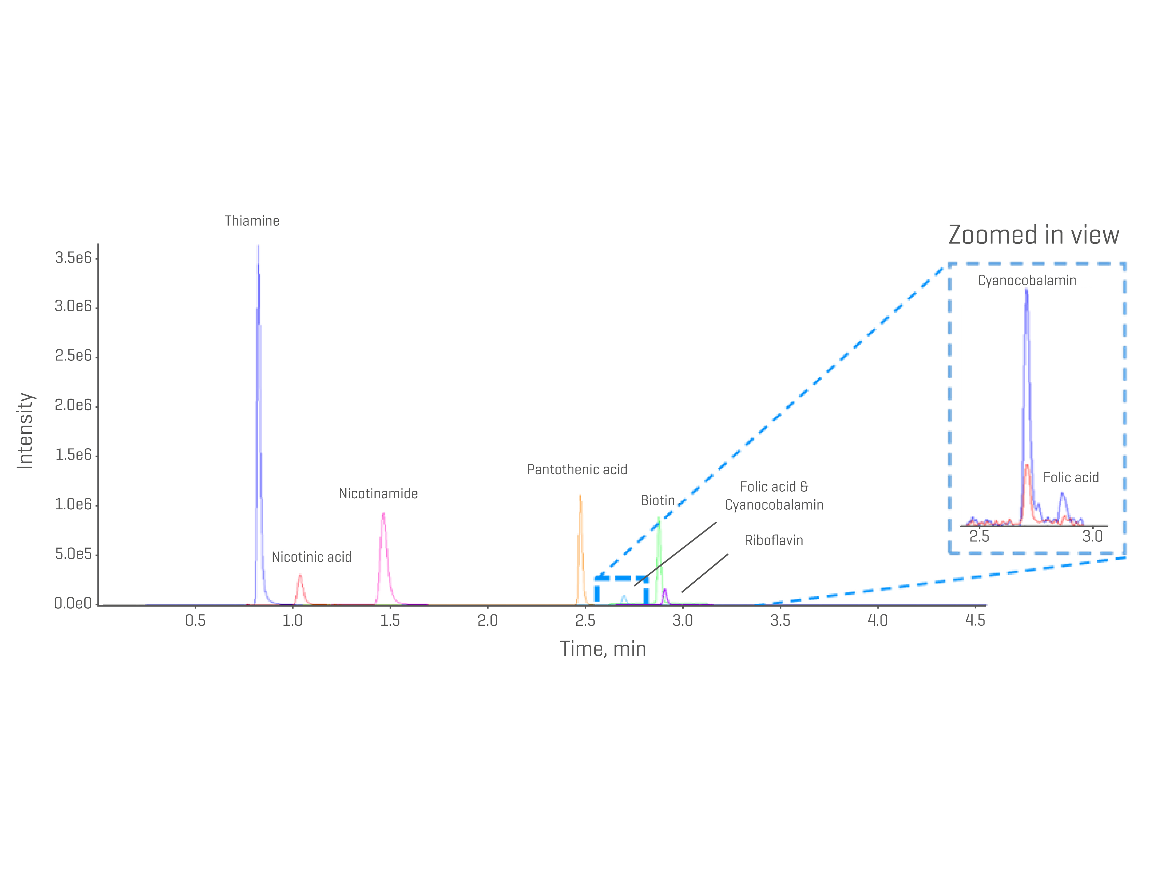Vitamins are organic compounds that play an essential role in cell function, growth, and development. They are instrumental in maintaining health and supporting various physiological functions. Assessing vitamin concentrations in the body is vital to identify potential vitamin deficiencies that can lead to a number of health disorders. Accurate quantification of low levels of vitamins in complex biological matrices is critical for clinical researchers investigating potential biomarkers of disease. However, these low concentrations make it challenging to develop highly sensitive and specific analytical methods to accurately and confidently measure these compounds.