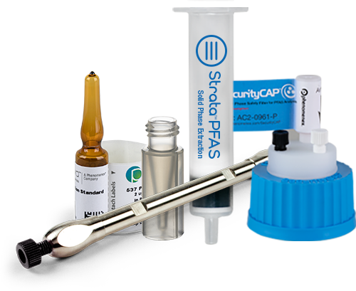 Strata PFAS SPE media ad Luna Omega PS C18 LC columns QC tested for low background. Accessories verified for the absence of PFAS.