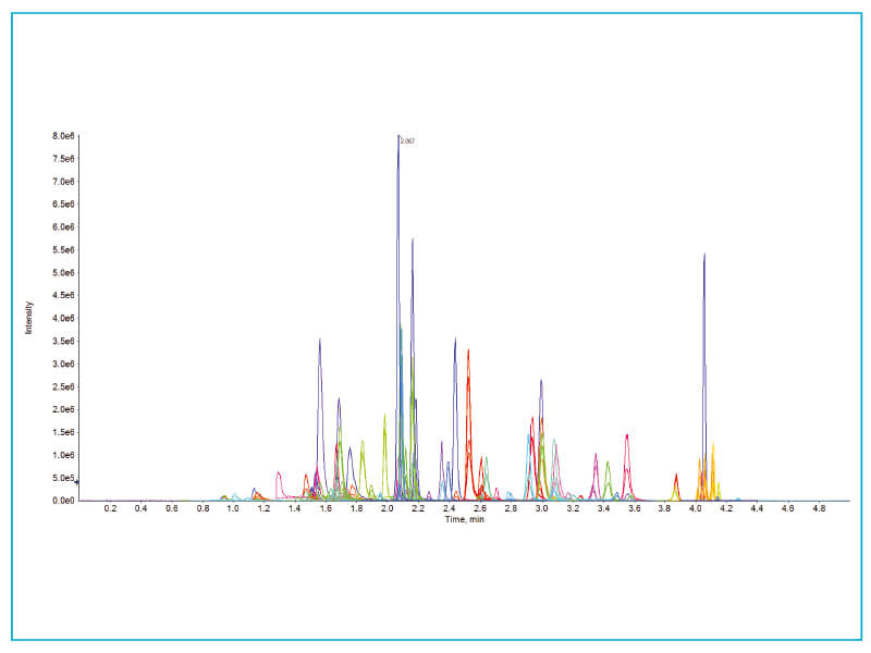 Fast MRM scanning (1 msec dwell times) and fast polarity switching (5 msec) enable the measurement of very large panels of compounds, across multiple compound classes.