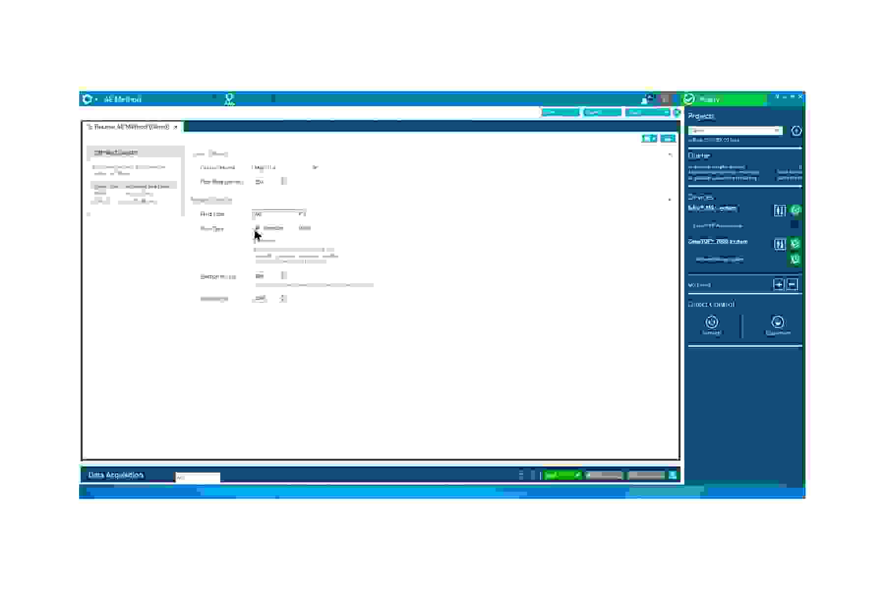 Method setup is both simple and fast. With data acquisition taking as little as 1 sample per second, you can quickly test many options for ideal settings.