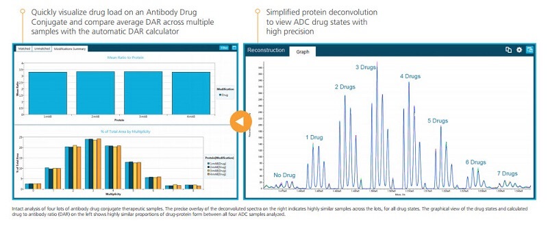 Intact analysis of antibody-drug conjugates (ADCs) can be challenging because of the size and complexity of the molecules. With BioPharmaView Software there’s no need to worry about your ADCs as the software: