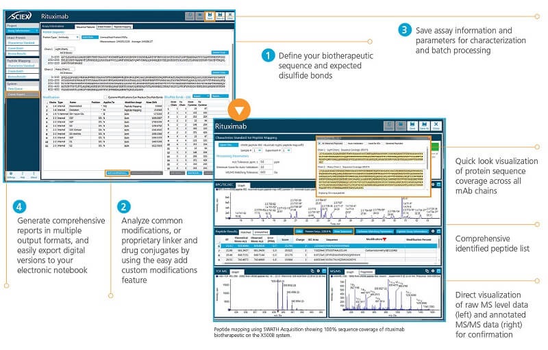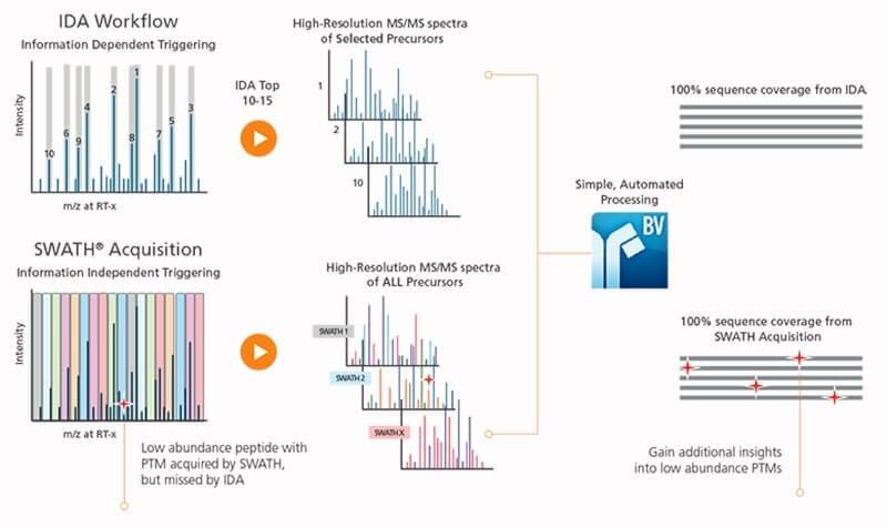 Proprietary SWATH® Acquisition for peptide mapping provides comprehensive data collection and eliminates the need for IDA criteria set-up and traditional method development.