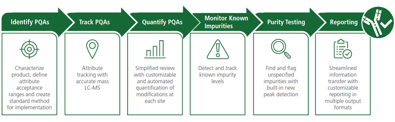 BioPharmaView Software makes moving to a powerful high-resolution, accurate mass LC-MS based MAM assay easier with the all-in-one software to: