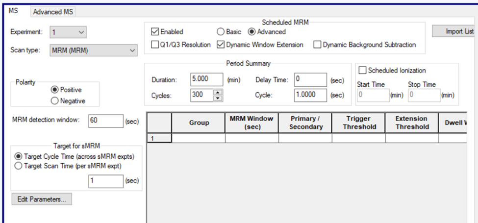 When setting up a scheduled MRM (sMRM) method in Analyst® software, users must add the time for the detection window (in seconds). Occasionally, the resulting scan window for some of the analytes is larger than that set in the method. There are two reasons for this: