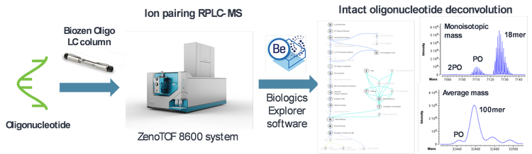 his technical note highlights a streamlined ion-pairing reverse-phase liquid chromatography-mass spectrometry (IP RPLC-MS) workflow for intact oligonucleotide analysis with enhanced MS sensitivity. This workflow combines the benefits of high MS sensitivity offered by the ZenoTOF 8600 system and easy-to-use features of Biologics Explorer software, leading to rapid quality and impurity assessment of oligonucleotides with increased confidence and user experience.