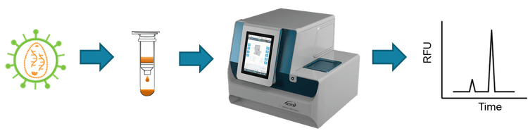 Lentivirus belongs to a genus of retroviruses that includes the human immunodeficiency virus (HIV). At 80-100 nm in diameter,it has an envelope on the outside and a capsid inside, composed of about 2000 copies of p24. Within the capsid, its genome consists of two single-stranded RNA held together as a dimer through noncovalent interactions near the 5′-end. Over recent years, recombinant LV has become a valuable gene delivery tool in clinical trials for treatment of various diseases. It can deliver transgene as large as 9kb and maintain long-term expression in target cells through integration into host cell genome. It infects dividing and no-dividing cells with broad tropism and low immunogenicity.1-2 With the demand of LV growing, so are needs for better characterization of these vectors to ensure their safety and efficacy. Many methods have been established for LV titer determination. However, a technology with the ability to analyze the integrity of RNA genome within LVs is lacking. For example, reverse transcription-quantitative PCR (RT-qPCR) can detect the presence of short fragments on RNA genome, but it lacks the ability to detect mutants or impurities. In addition, both RT and PCR amplification are known to cause variability.3-7 In this technical note, an amplification-free genome integrity analysis of LVs by CE-LIF on the BioPhase 8800 system is demonstrated.