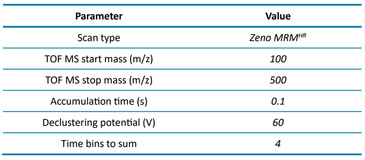 • Real-time Zeno MRMHR analysis:  Analyze the study samples in wide peak mode with Zeno MRMHR at 5 seconds per sample