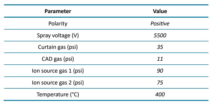 Data processing:  Data processing was performed using the Explorer and Analytics modules of SCIEX OS software.