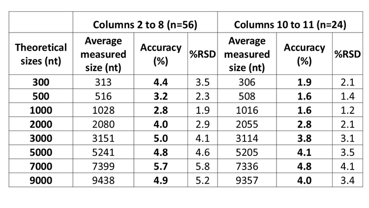 - Accurate sizing performance was consistently achieved across runs, supporting reliable analytical characterization.