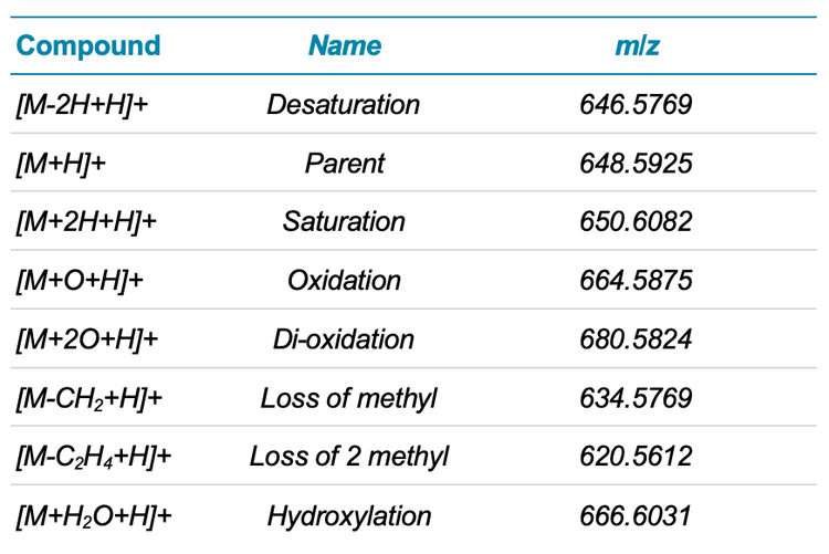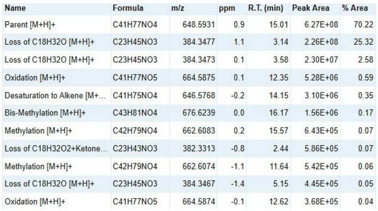 - Potential impurities were comprehensively identified with the new biotransformation list built into the lipid workflow of the Molecule Profiler software