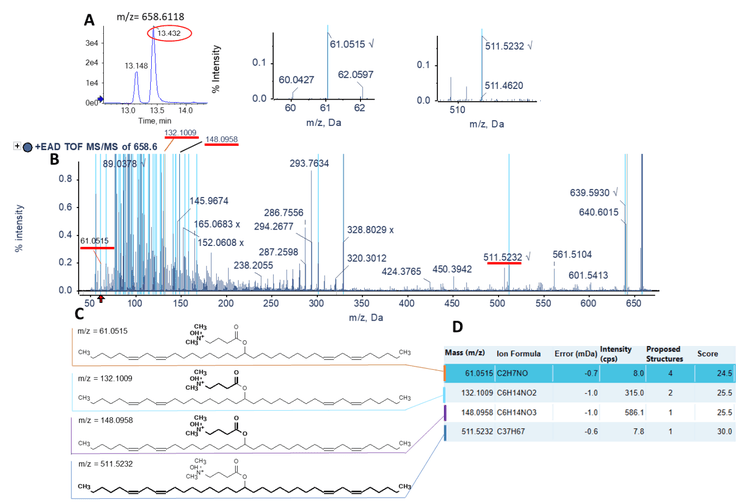 - Jones JW, et al. Electron-induced dissociation (EID) for structure characterization of glycerophosphatidylcholine: determination of double-bond positions and localization of acyl chains. J Mass Spectrom. 2015 Dec;50(12):1327-39. PMID: 26634966