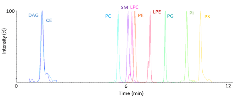 - Great separation of phospholipid and lysophospholipid (LPL) species to reduce isobaric overlap and provide confidence in identification