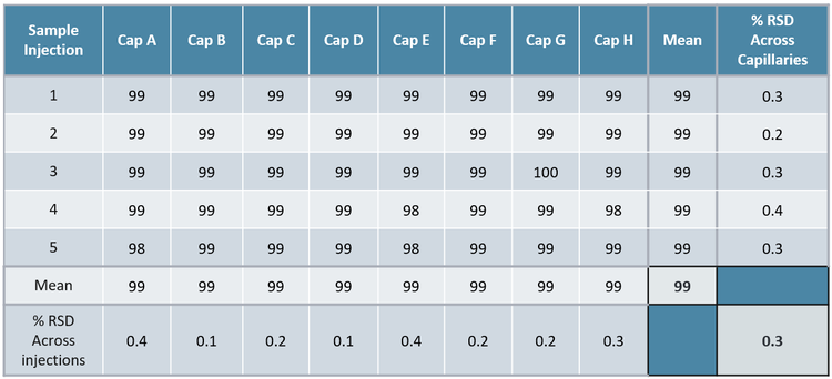 High-resolution AAV purity and VP ratio analysis by CE-SDS-LIF: High precision for AAV purity analysis with the %RSD of < 0.5% across 8 capillaries and 5 injections