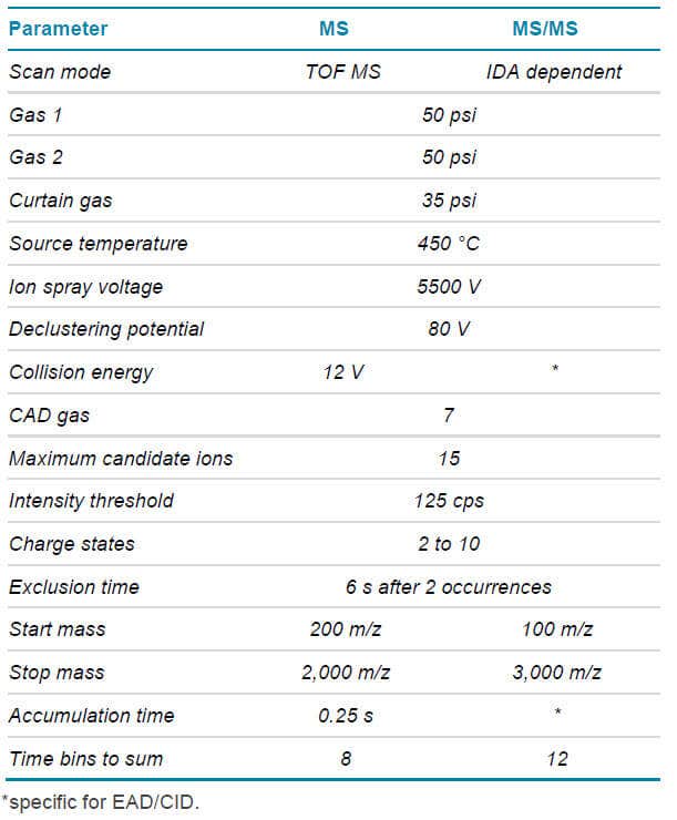 - Comprehensive peptide mapping of biopharmaceuticals utilizing electron activated dissociation (EAD). SCIEX technical note, RUO-MKT-02-12639-B.