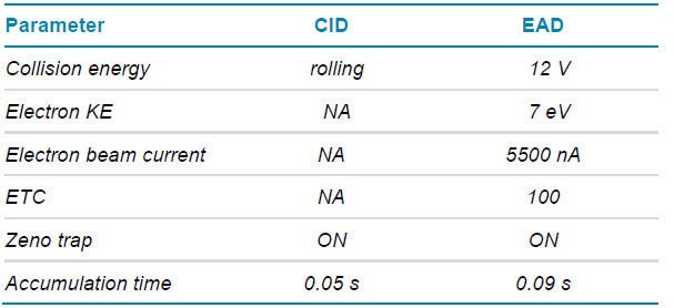 • High reproducibility: Reproducible fragmentation with EAD for singly, doubly, and multiply charged ions enables analysis of more precursors than other alternative and low reproducibility fragmentation techniques