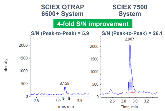 - 4-fold S/N improvement was observed compared to the SCIEX QTRAP 6500+ System (Figure 1)