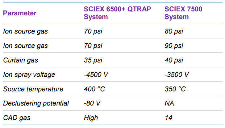 - Greater ion generation and ion transmission enabling significant gains in sensitivity due to hardware improvements on the SCIEX 7500 System such as the OptiFlow® Pro Ion Source with E Lens™ Technology and the D Jet™ Ion Guide1