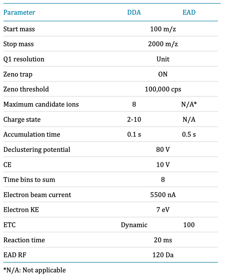 - An evaluation of single injection platform method for advanced characterization of protein therapeutics using electron activation dissociation (EAD). SCIEX technical note, RUO-MKT02-13965-A.