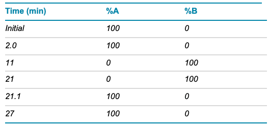 Chromatography: Two µL of the diluted MC3 sample (0.2 mg/mL) was injected onto an ExionLC AD system equipped with a reversed-phase column (C18, 1.7 µm, 2.1 × 150 mm). The column oven was set to 70°C. A total runtime of 27 min was used with a flow rate of 0.5 mL/min. Mobile phase A is described above and mobile phase B was 60:40, acetonitrile/methanol with 10mM ammonium acetate. Chromatographic conditions are described in Table 1.