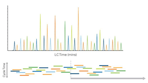 Mass spectrometry: MRM parameters for more than 110 cell culture components were optimized using chemical standards on a SCIEX Triple Quad 6500+ System. For both the SCIEX Triple Quad 6500+ and the SCIEX 7500 System, the Scheduled MRM™ Algorithm Pro was used to optimize cycle times and maximize dwell times for each MRM transition (Figure 2). By scheduling transitions around the expected retention time of an analyte, the sMRM method enables monitoring of significantly more MRMs simultaneously without sacrificing superior analytical precision.