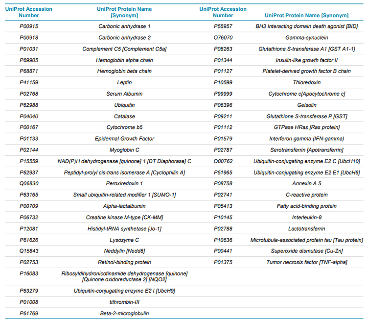 - A total of 48 proteins were quantified in an 8 min LC-MS/MS run with high confidence (4 transitions per protein)