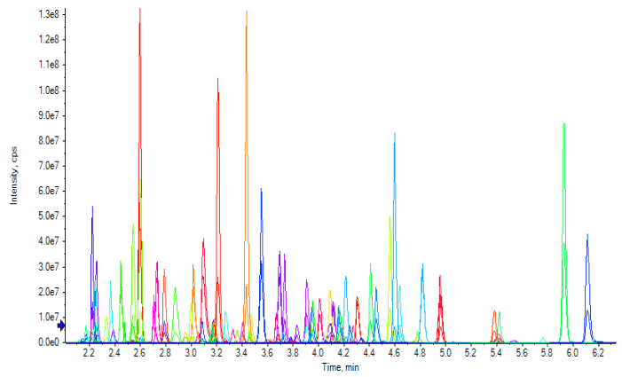 - Scheduled MRM Algorithm enabled high multiplexing to measure over 200 MRM transitions in an 8 min LC-MS/MS run by maximizing duty cycle