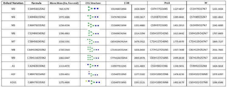 - The established N-glycan library enables scientists to perform fast, comprehensive and reliable glycan analyses for protein therapeutics.