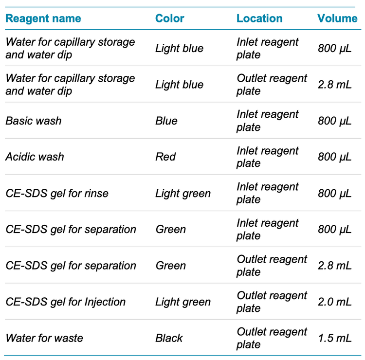 An all-inclusive BioPhase CE-SDS Protein Analysis kit: Contains the reagents required to process the sample and prepare the reagent inlet and outlet plates required for CE analysis