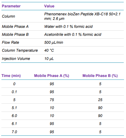 LC-MS conditions: Samples were analyzed in triplicate by a SCIEX Triple Quad 7500 LC-MS/MS System – QTRAP Ready, coupled with an ExionLC™ system. The method details are summarized in Table 1 and 2. The same sample set was also analyzed using a SCIEX Triple Quad 6500+ LC-MS/MS System, coupled with the same HPLC system, to characterize the performance difference between the two mass spectrometers. All MRM parameters were optimized on both mass spectrometers for accurate performance comparison.