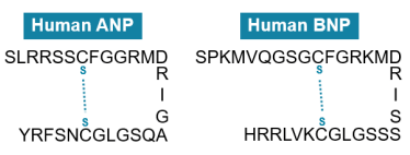 Natriuretic peptide (NP) family is a group of genetically distinct cyclic peptides with similar structure, containing an amino acid ring formed by a disulfide bond between two cysteine residues (Figure 1). They have emerged as important candidates for development of diagnostic tools and therapeutic agents in cardiovascular diseases.1 In this project, two peptides in the NP family, atrial natriuretic peptide (ANP) and B-type natriuretic peptide (BNP) are selected as the model analyte to evaluate the quantification capability of SCIEX Triple Quad™ 7500 LC-MS/MS System. The OptiFlow® Pro Ion Source together with D Jet™ Ion Guide offers significantly improved sensitivity for cyclic peptide quantification, through improved desolvation and focusing to improve MRM performance. Both ANP and BNP are solidly quantified at 0.05 ng/mL in rat plasma, multiple times lower than the previously published LLOQ.2 Outstanding reproducibility, precision, accuracy, and linearity are also achieved, proving the workflow robustness in parallel with the superior sensitivity.