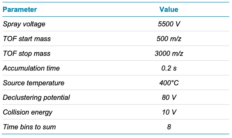 Mass spectrometry: MRMHR EAD experiments were performed in SCIEX OS software using the ZenoTOF 7600 system. Two or 3 charge states were targeted per subunit for EAD fragmentation. The key TOF MS and MRMHR settings used are listed in Tables 2 and 3, respectively.