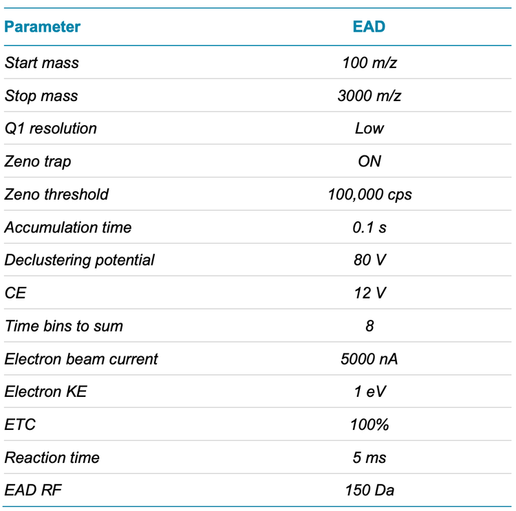 - A streamlined EAD-based middle-down workflow enabled confident sequence confirmation and PTM analysis in a single injection