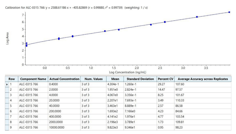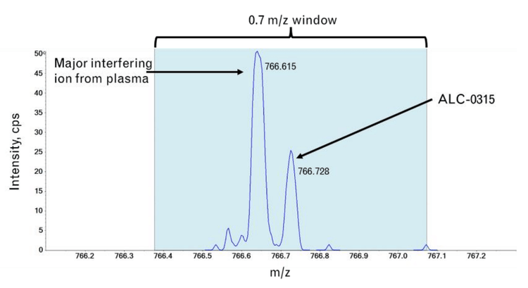 In this study, we assessed the ability of the ZenoTOF 7600 system to quantify ALC-0315 in plasma. This instrument includes a Zeno trap device that enhances MS/MS sensitivity to drive quantitative sensitivity. In addition, the instrument can provide complementary fragmentation via EAD to aid in structural characterization. Both aspects of the instrument were used to quantify and provide in-depth characterization of impurities related to ALC-0315 to demonstrate its utility in supporting LNP metabolism studies.