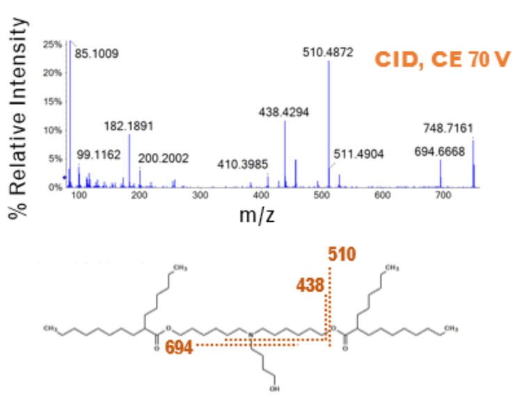 - Fragmentation of ionizable lipids and their related impurities using EAD results in information-rich product ion spectra even at low abundance after dilution into plasma