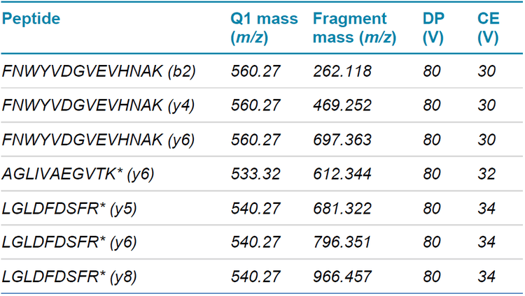 - High sensitivity MRM workflow for signature peptide quantification. SCIEX technical note, RUO-MKT-02-11882-A.