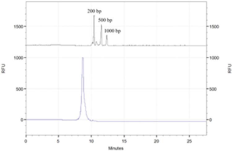 Figure 2 (front page) shows a representative electropherogram of the DNA size ladder (top) and the HCD from a lentivirus sample (bottom).