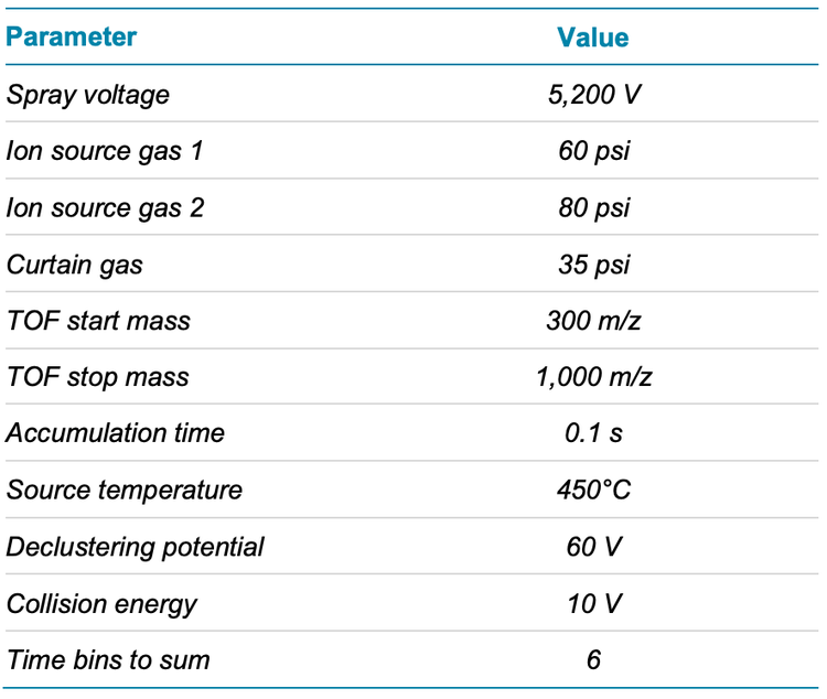 Chemicals and materials: ALC-0315 was provided by Acuitas Therapeutics Inc. Methanol (MeOH) was purchased from LiChrosolv (PN: 1.06035.2500). Ammonium acetate was from Fluka Analytical (PN: 73594-25G). Acetonitrile was (ACN) from Sigma-Aldrich (PN: 34851-4L).