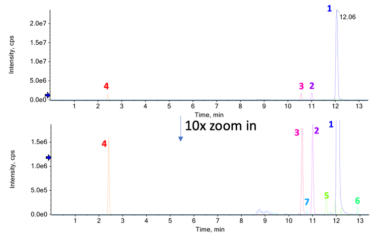 - The interscan dynamic range and quantitative sensitivity of the ZenoTOF 7600 system can decrease the risk of missing critical low-abundance impurities