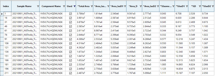 - Efficient identification was enabled in the Biologics Explorer software through ready-to-use workflow templates that provided confident peptide mapping results and visualization tools with the ability to export a PQA list to SCIEX OS software for quantification