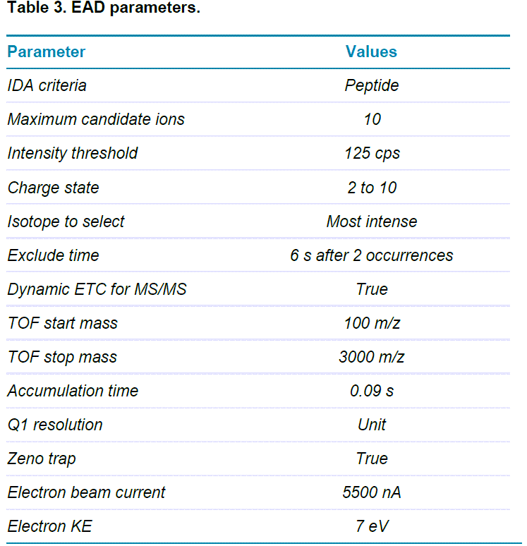 - An evaluation of single injection platform method for advanced characterization of protein therapeutics using electron activation dissociation (EAD). SCIEX technical note, RUO-MKT-02-13965-A.
