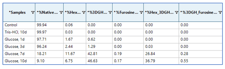 In summary, the data described in this technical note provide insight into the role of AGEs in the discoloration of protein therapeutics. Future work will involve studies of the key factors that affect color change, further investigation of the correlation between discoloration and AGEs and the mapping of the glycation and AGE hot spots in NISTmAb.