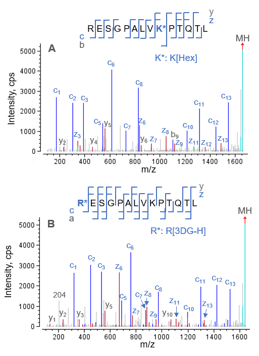 - Confident identification and accurate localization: EAD results in excellent fragmentation of glycated peptides and AGEs, leading to confident identification and accurate localization of these moieties
