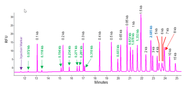 - Complete set of reagents for dsDNA fragment analysis with better kit shelf life than microchip based reagent kits