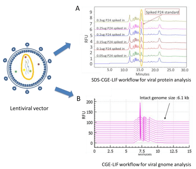 - Single protein analysis using a CGE-SDS-LIF workflow provides the p24 titer and the protein profile of LVV samples