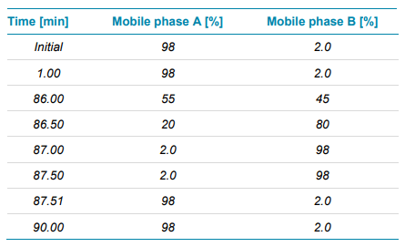 Chromatography: 3 µL (4 µg) of the trypsin/Lys-C digest were separated with a CSH C18 column (2.1×100 mm, 1.7 μm, 130 Å, Waters) using an ExionLC AD system. The mobile phase A consisted of water with 0.1% formic acid, while the organic phase B was acetonitrile 0.1% formic acid. A gradient profile was used at a flow rate of 350 μL/min (Table 1). The column temperature was maintained at 50°C.