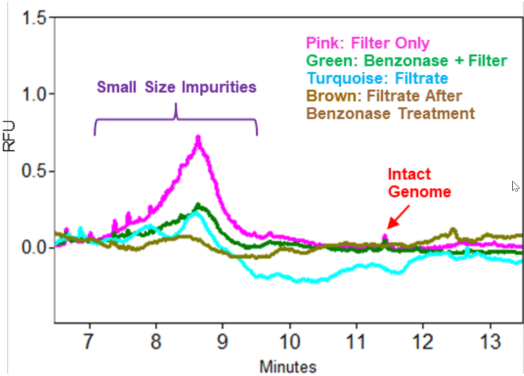- Both benzonase treatment and filtering help remove the small size impurities, simplifying data interpretation