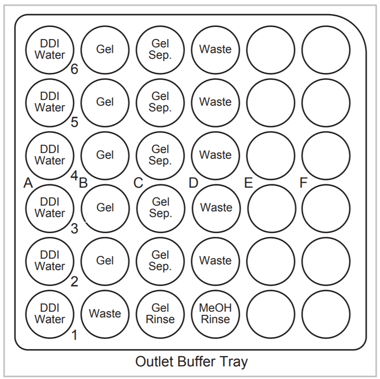 Vial Positions: Figures 3 and 4 illustrated the vial positions used for capillary conditioning, plasmid separation and shut down methods with SYBR Gold. Figure 5 shows the vial positions for plasmid separation with LIFluor EnhanCE stain.