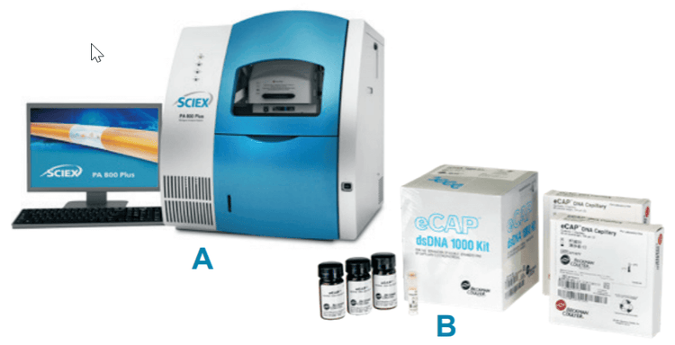 Materials: The dsDNA 1000 kit (PN 477410, Figure 1) was from SCIEX, Framingham, MA. A 10X concentrated stock solution of Tris Borate EDTA (10x TBE) was from Sigma Aldrich, St. Louis, MO (PN T4323). LIFluor EnhanCE fluorescent stain (PN 477409) was from SCIEX, Framingham, MA. SYBR Gold (PN S11494) was from Thermo, Carlsbad, CA. Plasmid DNAs were from an internal project at Pfizer, Chesterfield, MO. Methanol was from Fisher Scientific, Ontario, Canada (A4564).