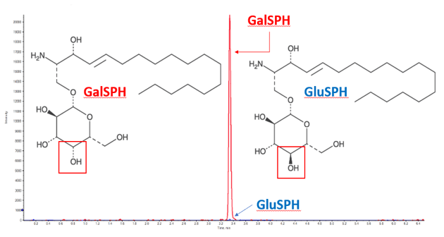 Figure 1. Resolution of Gal-SPH from Glu-SPH in a research sample previously identified as containing potential biomarkers for Krabbe disease.